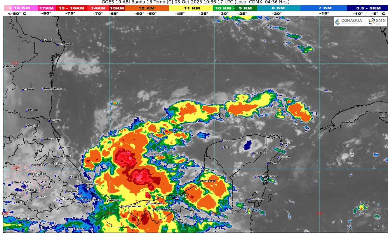 Oleaje: de 3 pies en el canal de Yucatán y costas de Quintana Roo.
