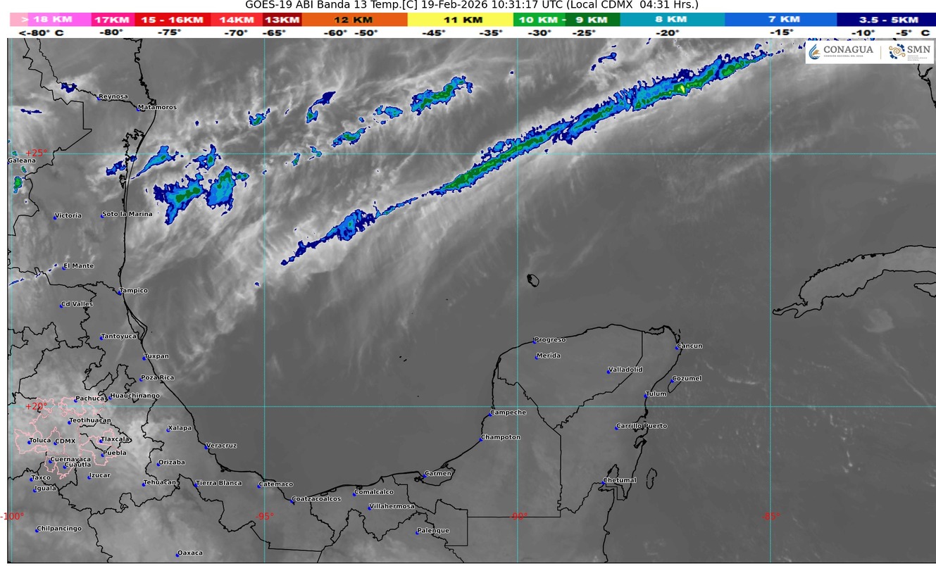 7.- JOSÉ MARÍA MORELOS.- Cielo parcialmente nublado, poca probabilidad de lluvias. Vientos del sureste de 25 a 35 km/h, incrementándose por la noche a 45 km/h con rachas más fuertes. Temperatura Máxima: 33/35°C, Temperatura Mínima para mañana: 20/22°C. Ambiente caluroso. Sensación Térmica: 38°C. Presión Atmosférica: 1016 hPa. Salida del Sol: 07:22 h. Puesta del Sol: 18:58 h.