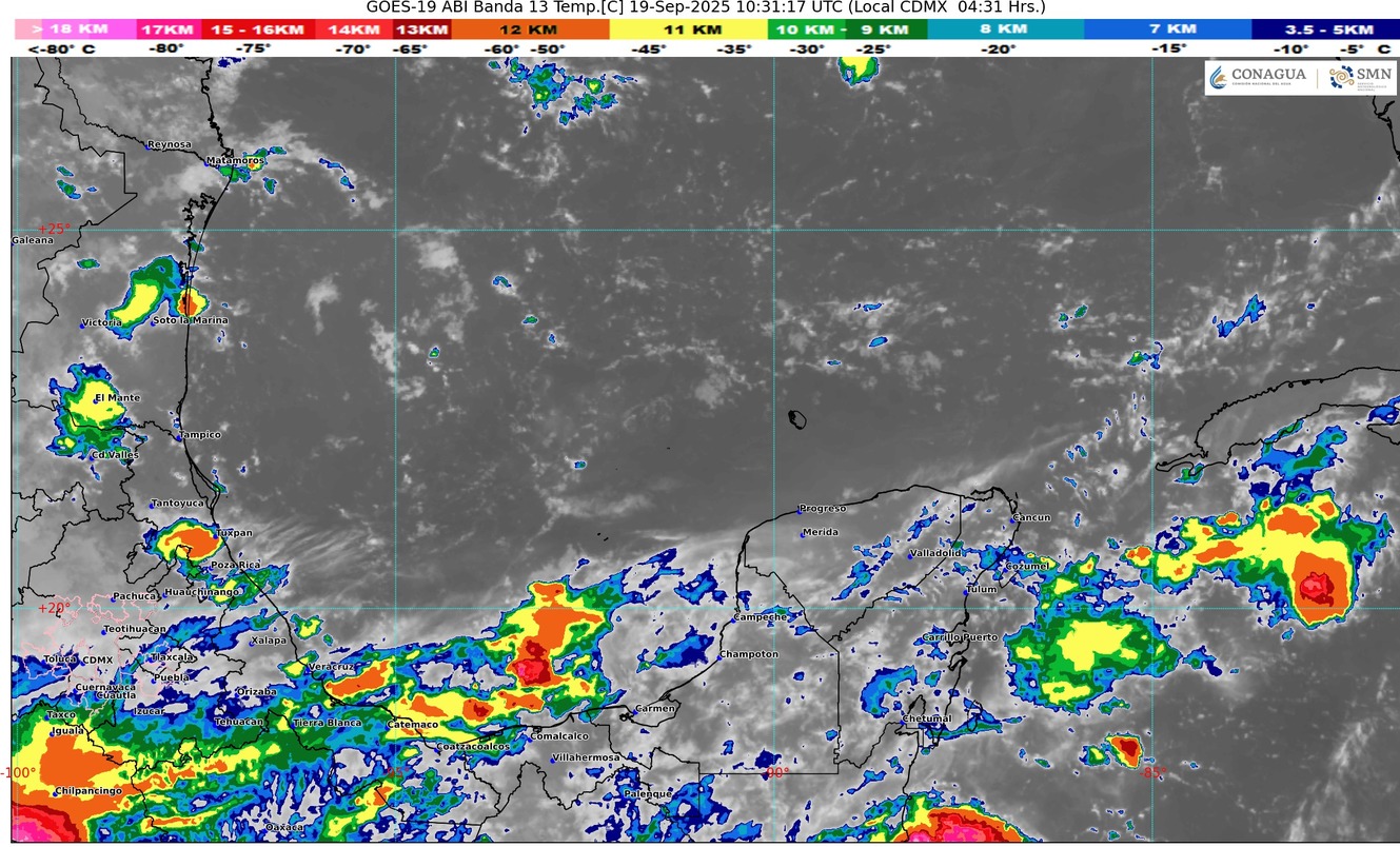 Oleaje: de 2 a 4 pies en el canal de Yucatán y costas de Quintana Roo.