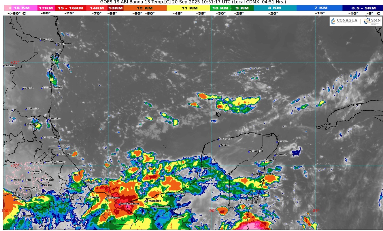 Oleaje: de 2 a 4 pies en el canal de Yucatán y costas de Quintana Roo.