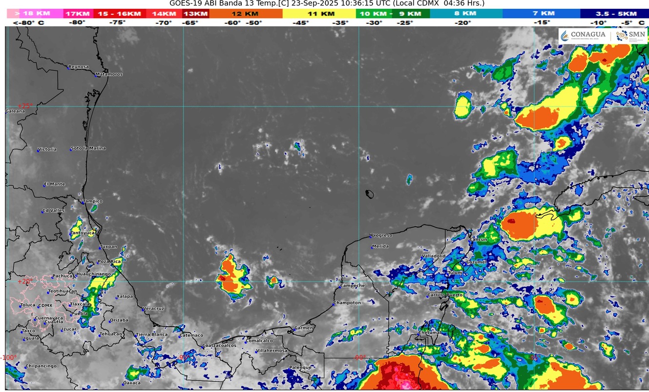 Oleaje: de 3 pies en el canal de Yucatán y costas de Quintana Roo.